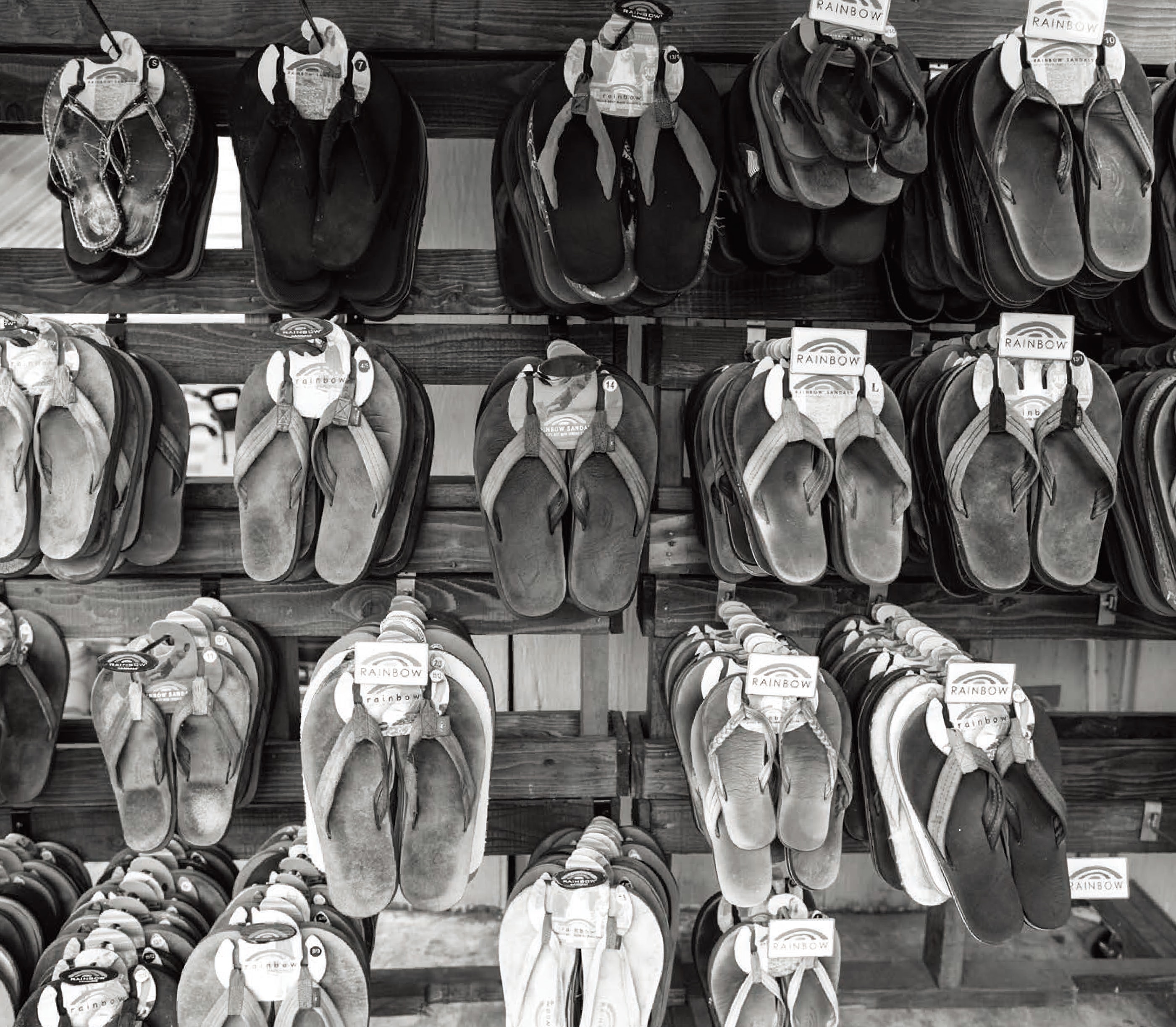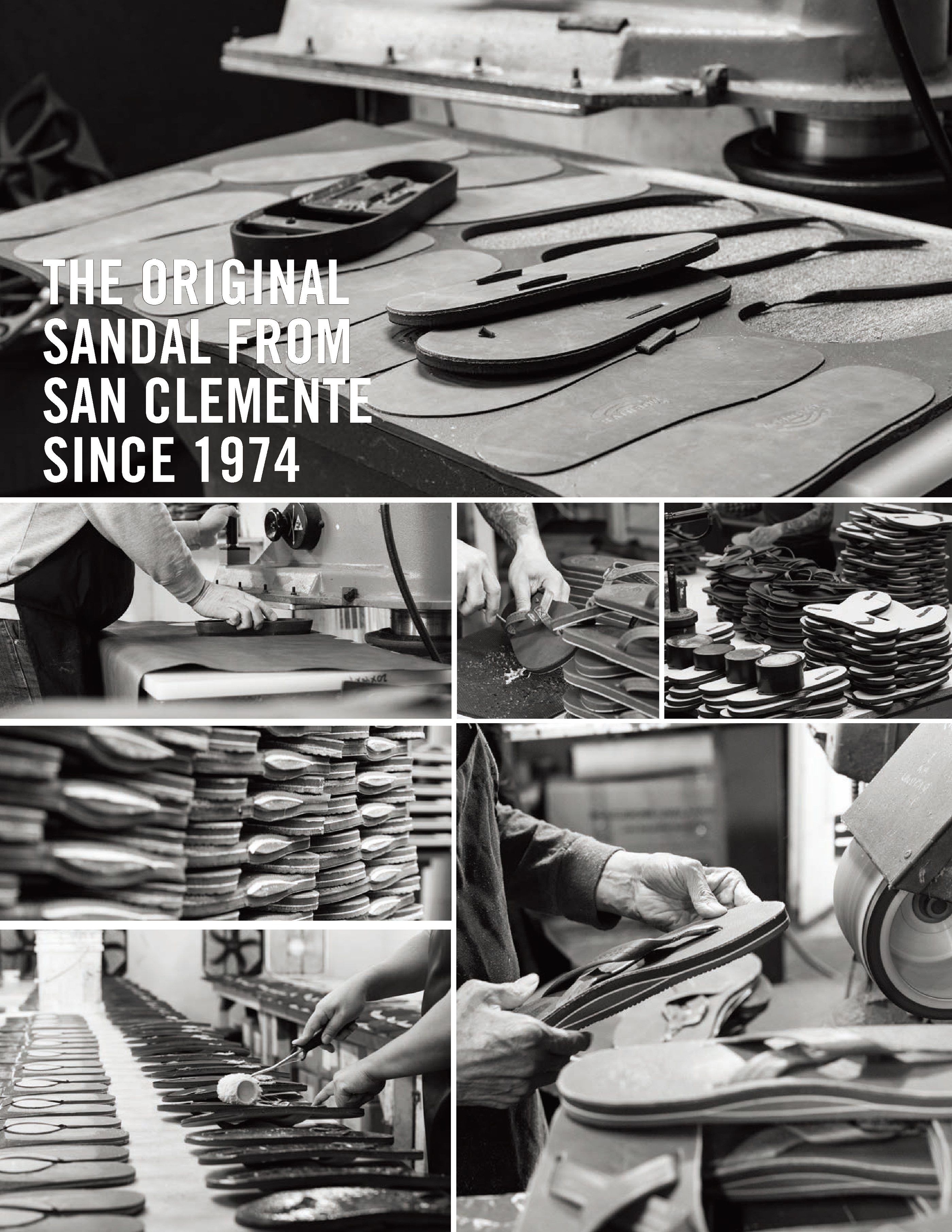 1972年、ジェイ・“スパーキー”・ロングリーはラグナビーチのガレージでサンダル作りをスタート。わずか200ドルでミシンとゴムを購入し、「世界最高のサンダルを作る」という目標に挑みました。最初の6足をホビーのディック・メッツに委託販売し即完売。売上で12足を製造し、さらに販売を広げました。ホビーでの販売と並行してソーダスト・フェスティバルの駐車場でもサンダルを販売。やがて正式なビジネス拠点を求め、1974年サンクレメンテにRainbow® Sandals, Inc. を設立しました。