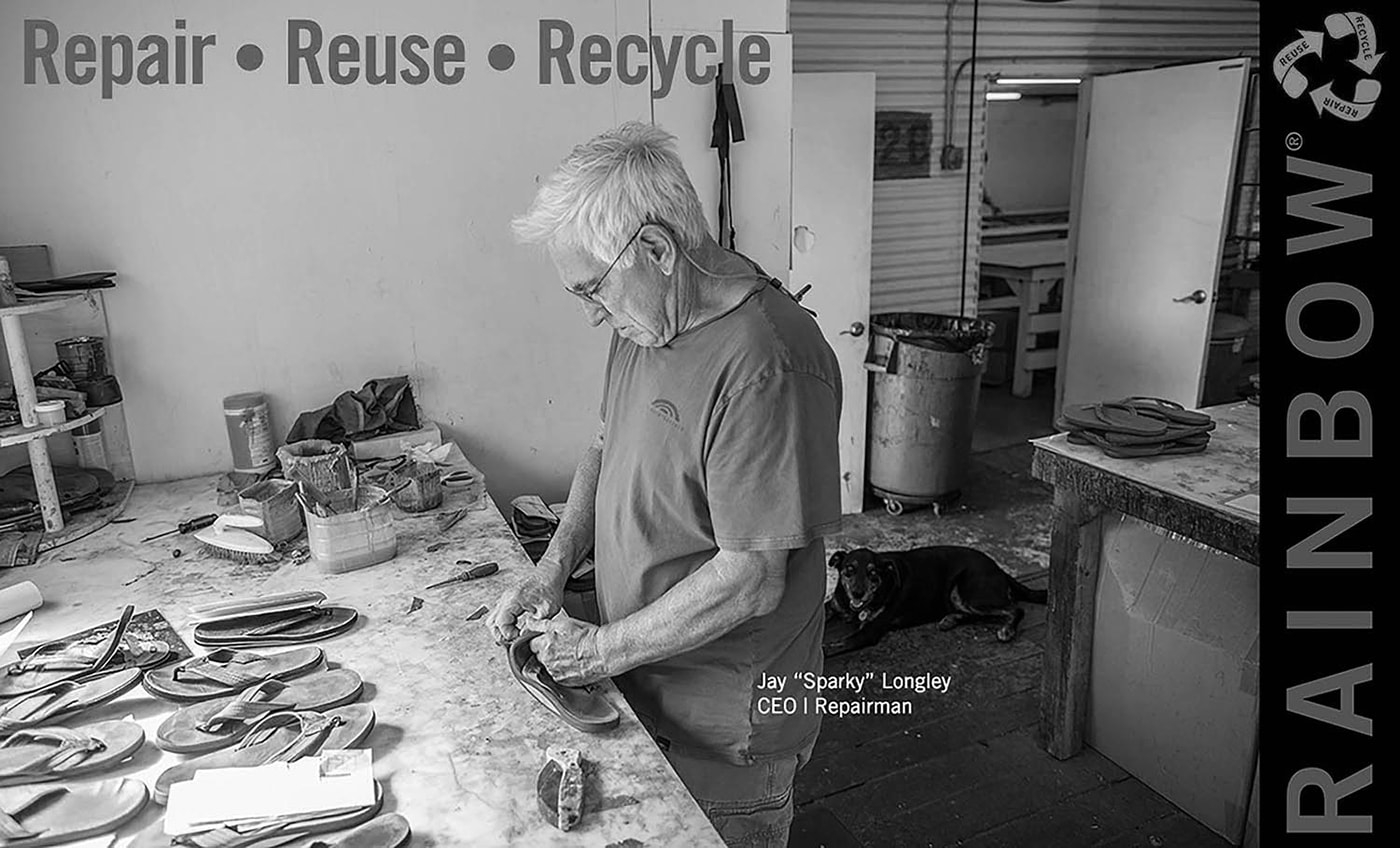 Rainbow® Sandalsの哲学は、Repair(修理)、Reuse(再利用)、Recycle(リサイクル)。