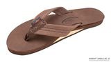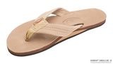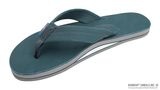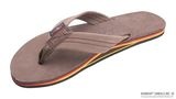 レインボーサンダルロゴの型押ヌバック革のフットベッドで作られております。ヌバック革のストラップは二重縫いされており、ナイロンの鼻緒は貼り合せのナイロン糸でボックス型のX縫いで補強されています。一枚の中底とアーチ・サポートは、独自のノン・スリップのレインボー底材に三度の糊付けにより接着されており、最大限の耐久性を実現しています。