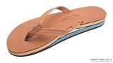 上底はクラシック仕上げの革でレインボーサンダルのロゴが型押しされています。クラシック・レザーのストラップは二重縫いされ、ナイロンの鼻緒は貼り合せのナイロン糸でボックス型のX縫いされ、強化されています。